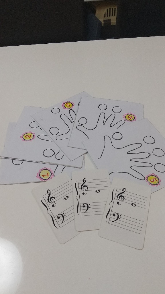 目から入る情報に頼るのもいいかと、最近は指番号のカードやリズムのカードを作っています。